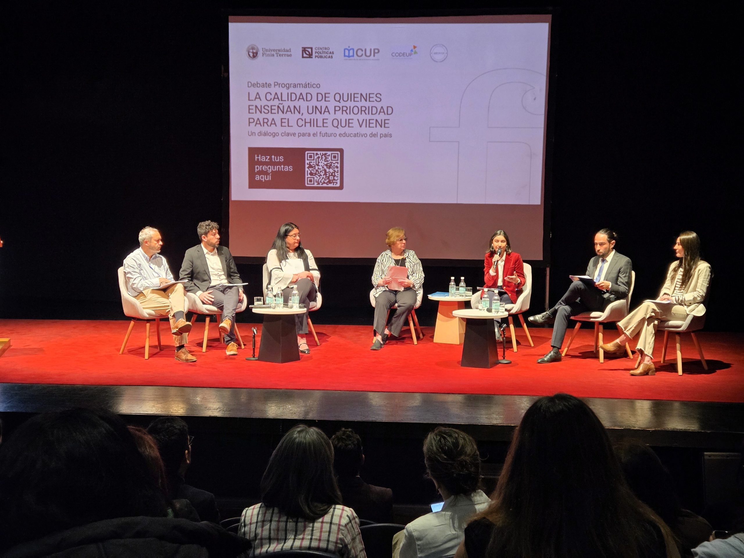 El encuentro reunió a María Paz Arzola (Kast), Magdalena Plant (Matthei), Camilo Sánchez (Jara), Nicolas Delpín (Enríquez-Ominami), Cristian Infante (Mayne-Nicholls) y Susana Gómez (Kaiser). El diálogo fue moderado por Marilú Matte, presidenta del Consejo de Decanos de Educación de Universidades Privadas (CODEUP) y Decana de la Facultad de Educación y Ciencias Sociales de la universidad anfitriona, y congregó a representantes del mundo académico, equipos programáticos, educadores y estudiantes interesados en reflexionar sobre el rol clave de la formación docente.